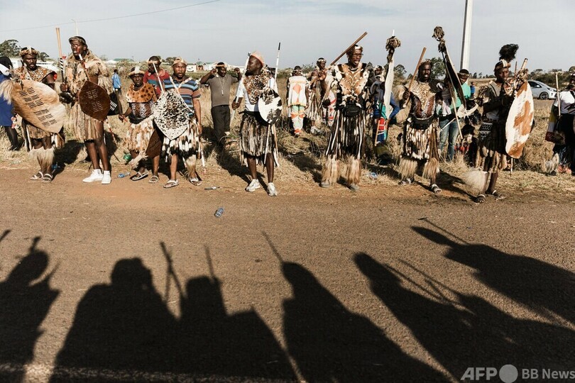 【今日の1枚】盛大な見送り、霊きゅう車を囲むズールーの戦士 南ア