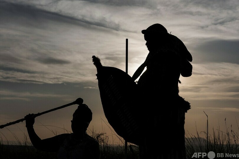 【今日の1枚】盛大な見送り、霊きゅう車を囲むズールーの戦士 南ア