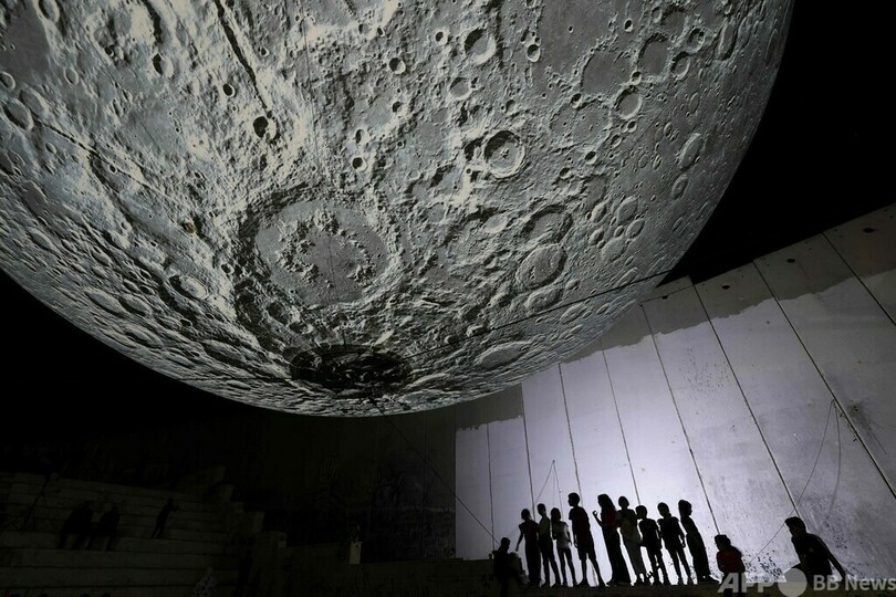 【10月1日 AFP】パレスチナ自治区ヨルダン川西岸(West Bank)ベツレヘム(Bethlehem)近郊にあるアイーダ(al-Aida)難民キャンプで開催された英国人アーティストのルーク・ジェラム(Luke Jerram)氏による巡回展「月の博物館(the Museum of the Moon)」 。(c)AFP