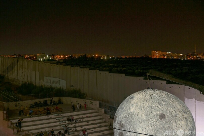【10月1日 AFP】パレスチナ自治区ヨルダン川西岸(West Bank)ベツレヘム(Bethlehem)近郊にあるアイーダ(al-Aida)難民キャンプで開催された英国人アーティストのルーク・ジェラム(Luke Jerram)氏による巡回展「月の博物館(the Museum of the Moon)」 。(c)AFP