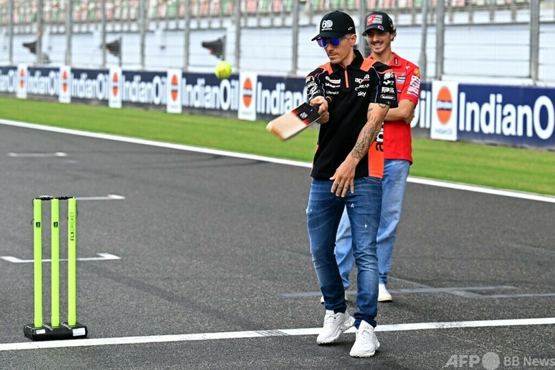 【9月22日 AFP】ロードレース世界選手権、第13戦インドGPの開催を週末に控え、MotoGPのライダーが21日、会場のサーキットでクリケットに挑戦した。インドでのMotoGP開催は今回が初めて。今GPは22日にフリー走行が始まり、24日に決勝が行われる。(c)AFP