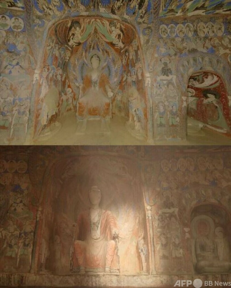 同プロジェクトは3Dモデリング技術、ゲームエンジンによる物理ベースレンダリング、動的なグローバルイルミネーション、VR(仮想現実)シーンなどの最先端技術を総合的に応用し、第285洞窟を本物と同じサイズで高精度、立体的に再現し、1億枚以上の超高精細デジタルモデルと超高解像度の壁面の色彩を実現しました。観光客は壁画を間近で鑑賞し、洞窟の細部を360度自由に見渡すことができるほか、洞窟の天井に舞い上がり、壁画のストーリーを体験することができます。(c)CGTN Japanese/AFPBB News