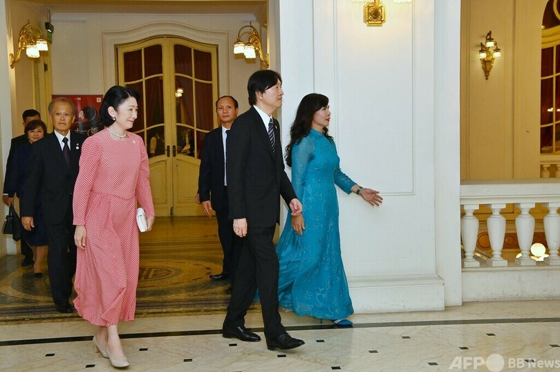 秋篠宮ご夫妻のベトナム訪問は、1999年以来。今年は日本とベトナムの外交関係樹立50周年に当たってベトナムから招待を受け、前日21日にも関連行事に出席された。(c)AFP