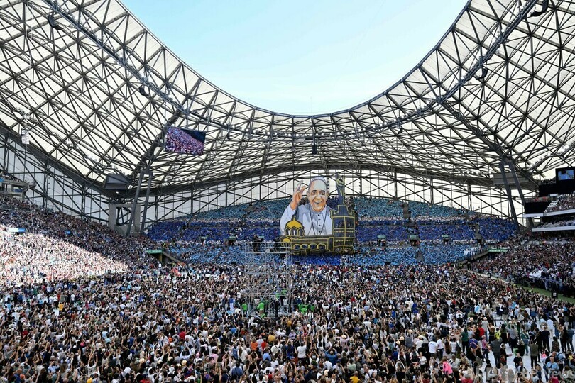 マルセイユには2日間の日程で訪問している。滞在期間中最も大きな行事となったミサは、普段はサッカーやラグビーの試合が開催されるベロドローム(Velodrome)スタジアムで行われた。