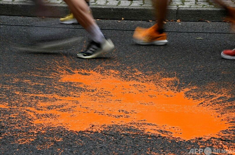 【9月25日 AFP】ドイツ・ベルリンで24日に行われたベルリン・マラソン(2023 Berlin Marathon)のスタート直前に、環境団体「最後の世代(Letzte Generation)」の活動家がコース上にオレンジ色の塗料をまいたり、道を封鎖しようとしたりする騒ぎがあった。