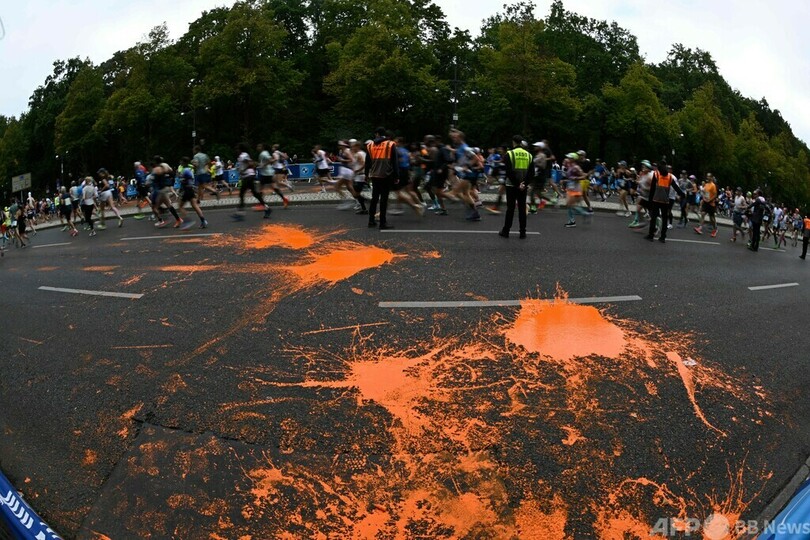 環境団体がコースに塗料 ベルリン・マラソンで妨害行為