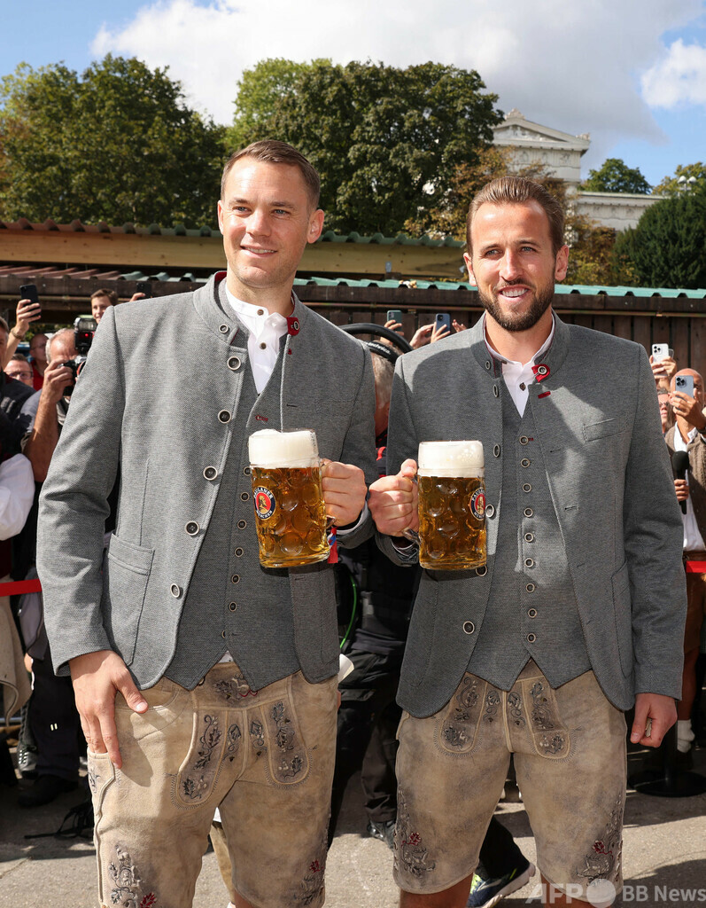 バイエルンは前日のリーグ戦でVfLボーフム(VfL Bochum)に7-0で大勝。ハットトリックを達成した新加入のFWハリー・ケイン(Harry Kane)は、オクトーバーフェスト初参加を前に「ここに来た時に文化と街を知りたいと話したが、そのためにそれ(オクトーバーフェスト)以上の場所はないだろう」と話していた。(c)AFP