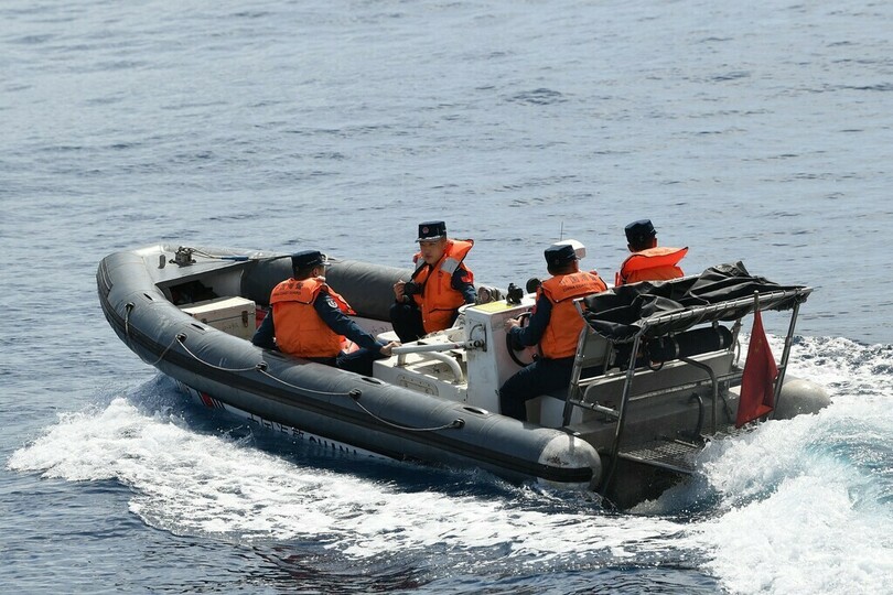 フィリピン沿岸警備隊が公表した映像には、ゴーグルとシュノーケル、足ひれを着けた隊員が白いブイをつなぐロープをナイフで切断している様子が捉えられている。