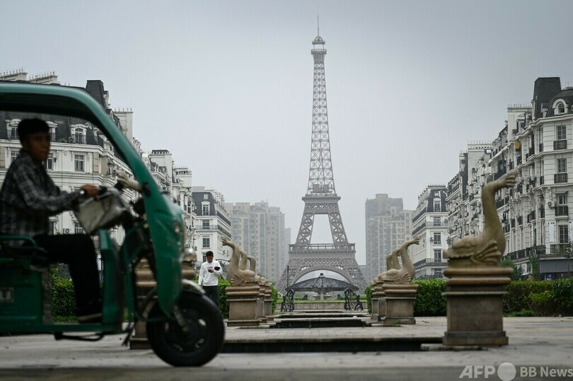 【9月28日 AFP】「エッフェル塔(Eiffel Tower)」のそばに凝った装飾の噴水があり、若い女性がプードルを連れて付近を散歩している。大通りの両側には、屋根とバルコニーに特徴があり、「アパルトマン」をほうふつさせる集合住宅が立ち並んでいる。ここは中国・天都城(Tianducheng)。店舗の看板が中国語で書かれていなければ、フランスの首都パリと見まがう風景だ。