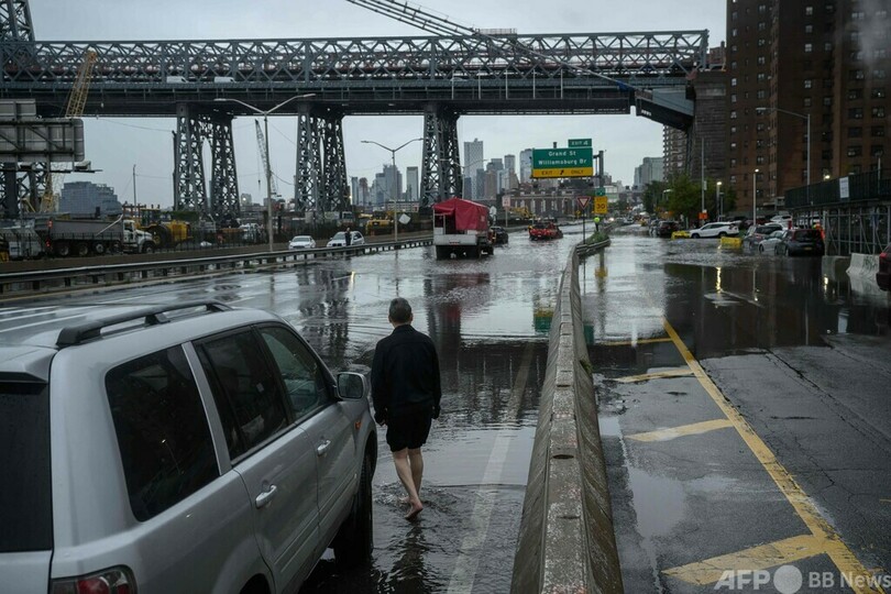 米NYが豪雨で冠水 航空便の欠航や地下鉄運休も