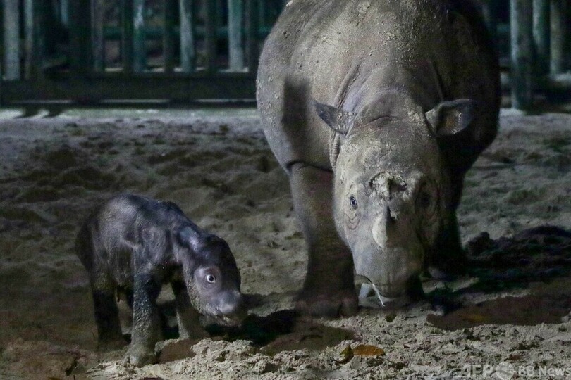 生まれたばかり、絶滅危惧のスマトラサイの赤ちゃん インドネシア