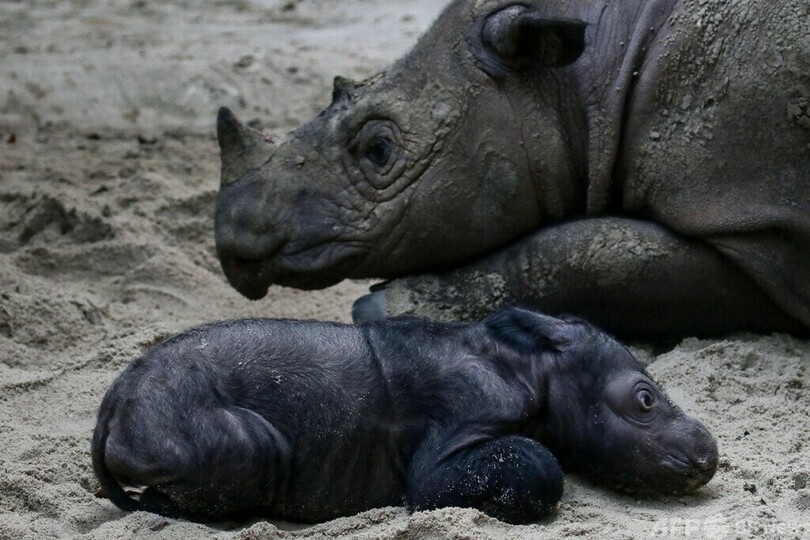 生まれたばかり、絶滅危惧のスマトラサイの赤ちゃん インドネシア