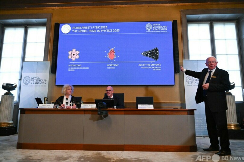【10月3日 AFP】(更新、写真追加)スウェーデン王立科学アカデミー(Royal Swedish Academy of Sciences)は3日、2023年のノーベル物理学賞(Nobel Prize in Physics)を、アト秒(100京分の1秒)のパルス光を発生させる研究における功績で、フランスのピエール・アゴスティーニ(Pierre Agostini)氏ら原子物理学者3氏に授与すると発表した。