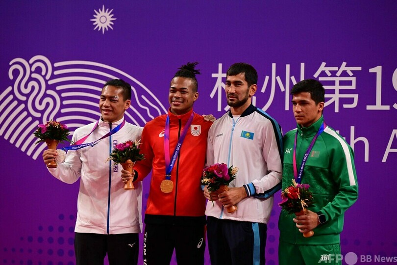 【10月5日 AFP】第19回アジア競技大会(19th Asian GamesAsiad)は4日、ボクシングの男子71キロ級決勝が行われ、岡沢セオン(Sewonrets Quincy Mensah Okazawa)が金メダルを獲得した。(c)AFP