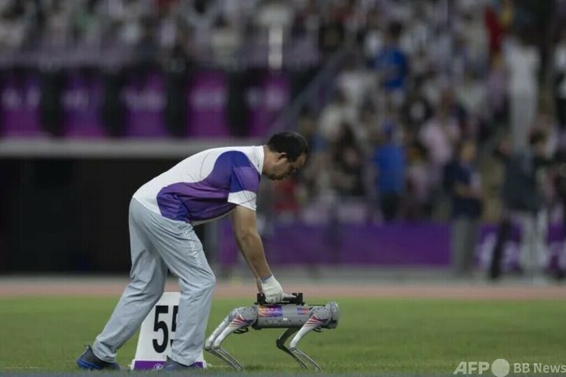 <杭州アジア大会>陸上競技場で円盤を運ぶロボット犬に注目集まる
