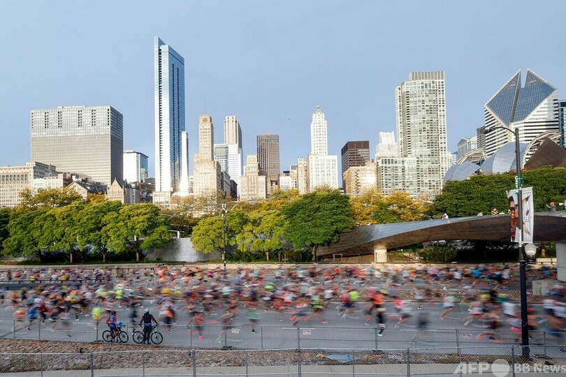 【10月9日 AFP】(写真追加)シカゴ・マラソン(Bank of America Chicago Marathon 2023)は8日、米イリノイ州シカゴで行われ、男子のケルビン・キプタム(Kelvin Kiptum、ケニア)が速報タイム2時間0分35秒の世界新記録で優勝した。