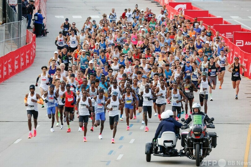 【10月9日 AFP】(写真追加)シカゴ・マラソン(Bank of America Chicago Marathon 2023)は8日、米イリノイ州シカゴで行われ、男子のケルビン・キプタム(Kelvin Kiptum、ケニア)が速報タイム2時間0分35秒の世界新記録で優勝した。