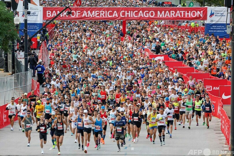 【10月9日 AFP】(写真追加)シカゴ・マラソン(Bank of America Chicago Marathon 2023)は8日、米イリノイ州シカゴで行われ、男子のケルビン・キプタム(Kelvin Kiptum、ケニア)が速報タイム2時間0分35秒の世界新記録で優勝した。