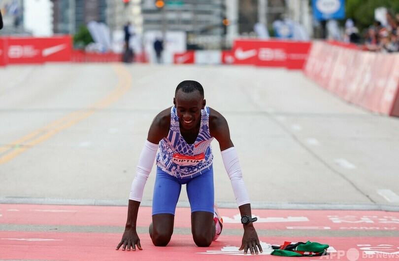 【10月9日 AFP】(写真追加)シカゴ・マラソン(Bank of America Chicago Marathon 2023)は8日、米イリノイ州シカゴで行われ、男子のケルビン・キプタム(Kelvin Kiptum、ケニア)が速報タイム2時間0分35秒の世界新記録で優勝した。