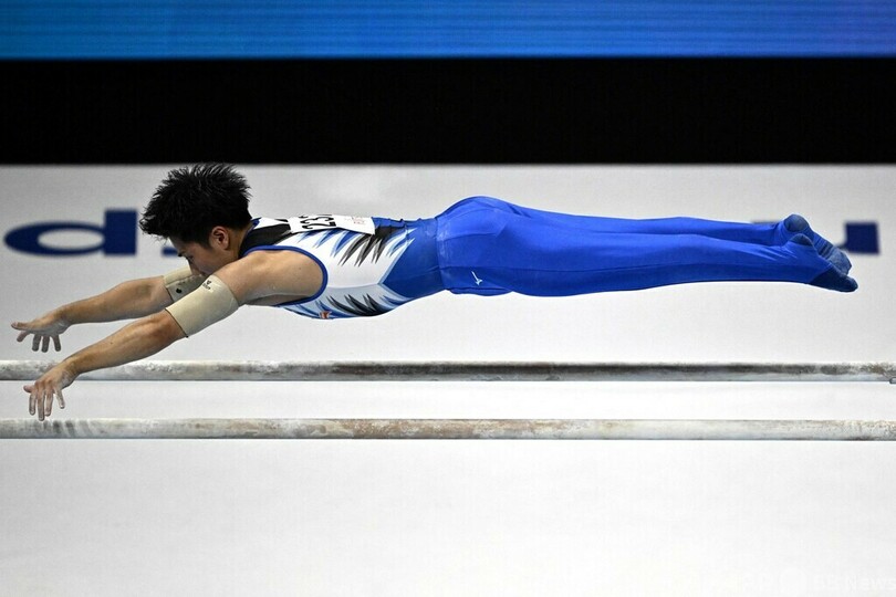 平行棒では杉本海誉斗(Kaito Sugimoto)が15.000点を記録し、銅メダルを獲得している。(c)AFP