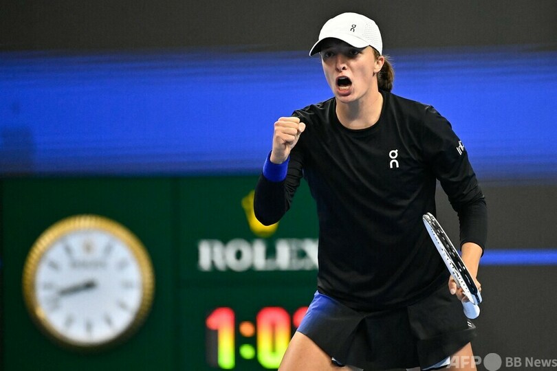 先月アリーナ・サバレンカ(Aryna Sabalenka)に世界ランク1位の座を明け渡したシフィオンテクは好調ぶりを取り戻しており、準決勝ではマッチ17連勝中だったココ・ガウフ(Coco Gauff、米国)を退けて決勝に進出していた。(c)AFP