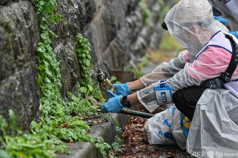 【10月22日 AFP】東京・新宿区の路上でごみを拾う「スポGOMIワールドカップ2023(SpoGOMI World Cup 2023)」日本大会の参加者。