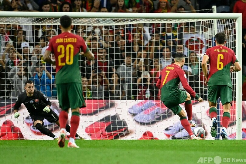 グループJのポルトガルは、クリスティアーノ・ロナウド(Cristiano Ronaldo)の2ゴールでスロバキアに3-2で勝利。開幕から7戦全勝で上位2位以内が確定し、本大会出場権を獲得した。