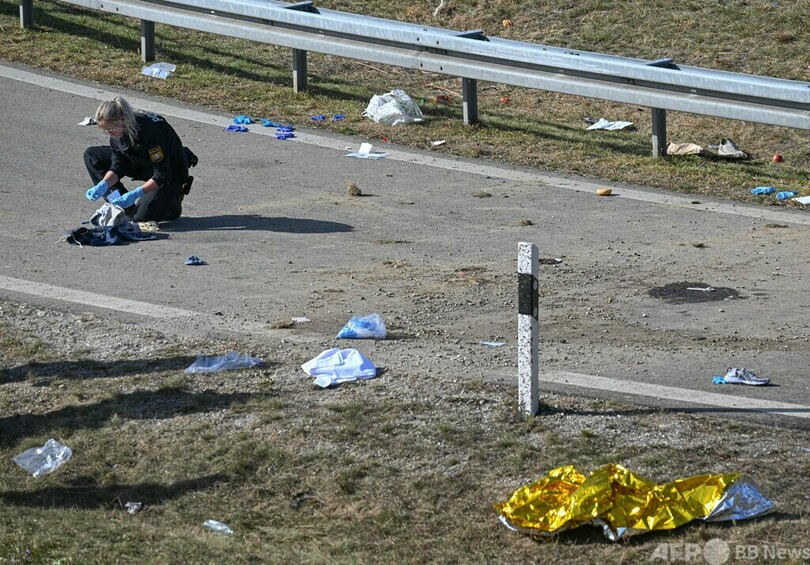 警察によると、現場はオーストリア国境から約50キロの地点。ミュンヘン(Munich)に向かっていた9人乗りの小型バスには23人が乗っていたという。