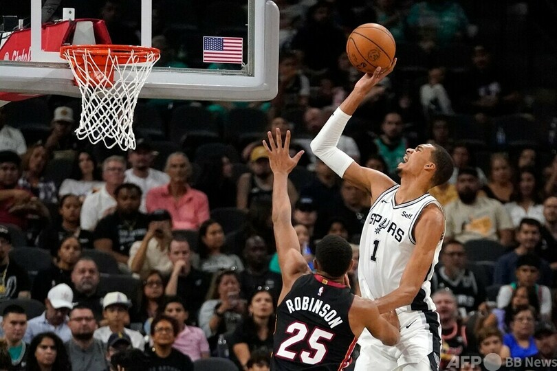 【10月14日 AFP】米プロバスケットボール(NBA)、サンアントニオ・スパーズ(San Antonio Spurs)のビクター・ウェンバンヤマ(Victor Wembanyama)は13日、マイアミ・ヒート(Miami Heat)とのプレシーズンゲームでデビュー2戦目に臨み、23得点の活躍を見せた。試合もスパーズが120-104で勝利した。