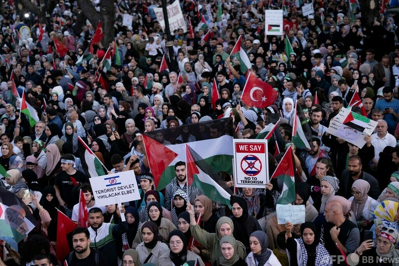 【10月15日 AFP】イスラエルとパレスチナ自治区ガザ地区(Gaza Strip)を実効支配するイスラム組織ハマス(Hamas)との武力衝突をめぐり、世界各地の都市で週末、抗議デモが行われた。