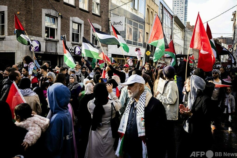 【10月15日 AFP】イスラエルとパレスチナ自治区ガザ地区(Gaza Strip)を実効支配するイスラム組織ハマス(Hamas)との武力衝突をめぐり、世界各地の都市で週末、抗議デモが行われた。