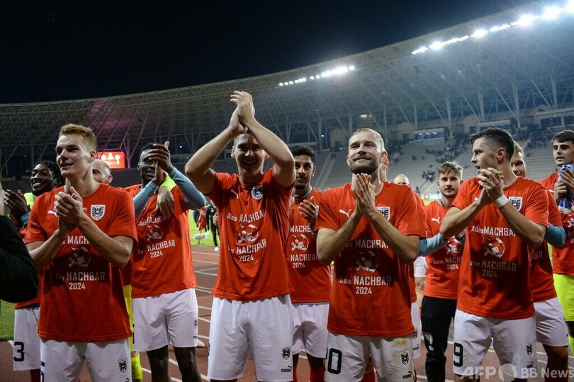 また、グループFのオーストリアは、マルセル・サビッツァー(Marcel Sabitzer)がPKで決勝点を挙げて1‐0でアゼルバイジャンを下し、本大会出場を決めている。(c)AFP