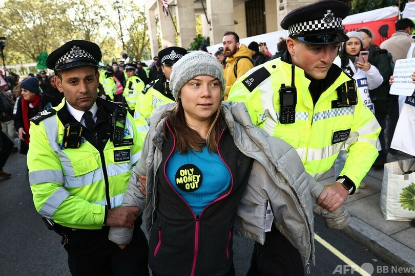 グレタさん、また警察に拘束 英でエネルギー会議に抗議中