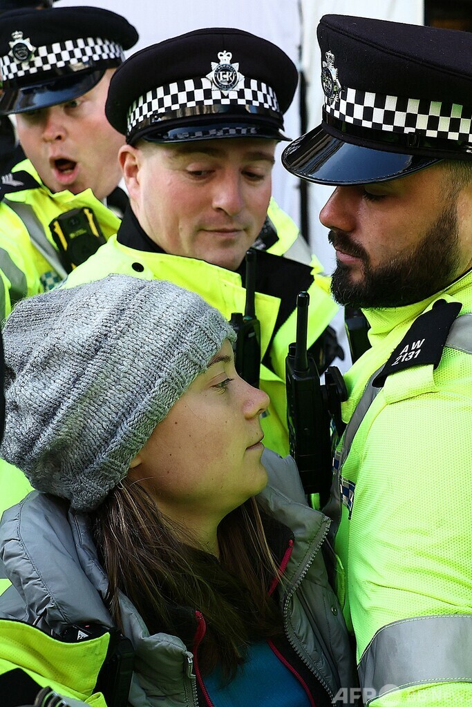 グレタさん、また警察に拘束 英でエネルギー会議に抗議中