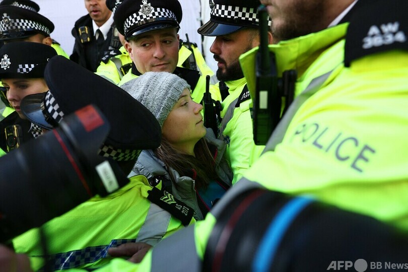 グレタさん、また警察に拘束 英でエネルギー会議に抗議中
