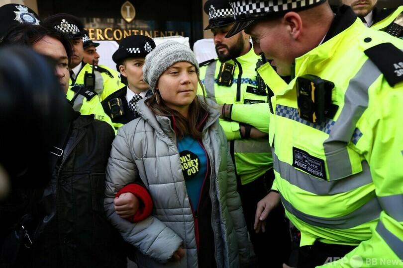 グレタさん、また警察に拘束 英でエネルギー会議に抗議中