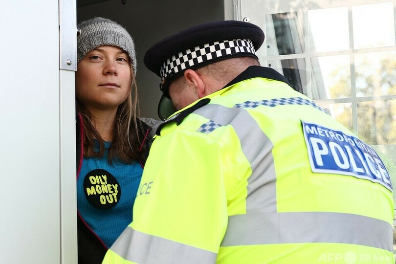 グレタさん、また警察に拘束 英でエネルギー会議に抗議中