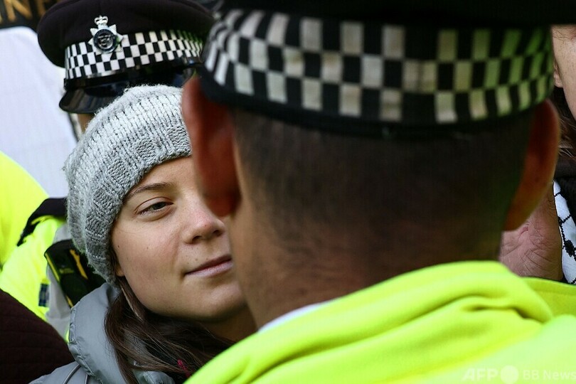 グレタさん、また警察に拘束 英でエネルギー会議に抗議中