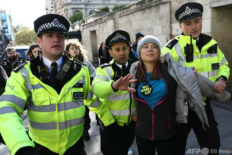 グレタさん、また警察に拘束 英でエネルギー会議に抗議中