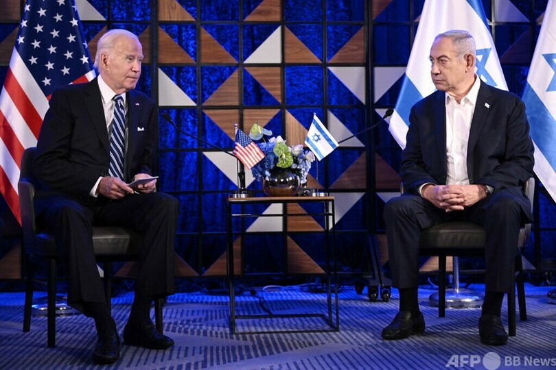 【10月18日 AFP】(更新)米国のジョー・バイデン(Joe Biden)大統領は18日、イスラエルを訪問し、テルアビブでベンヤミン・ネタニヤフ(Benjamin Netanyahu)首相と会談した。