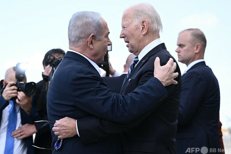 【10月18日 AFP】(更新)米国のジョー・バイデン(Joe Biden)大統領は18日、イスラエルを訪問し、テルアビブでベンヤミン・ネタニヤフ(Benjamin Netanyahu)首相と会談した。