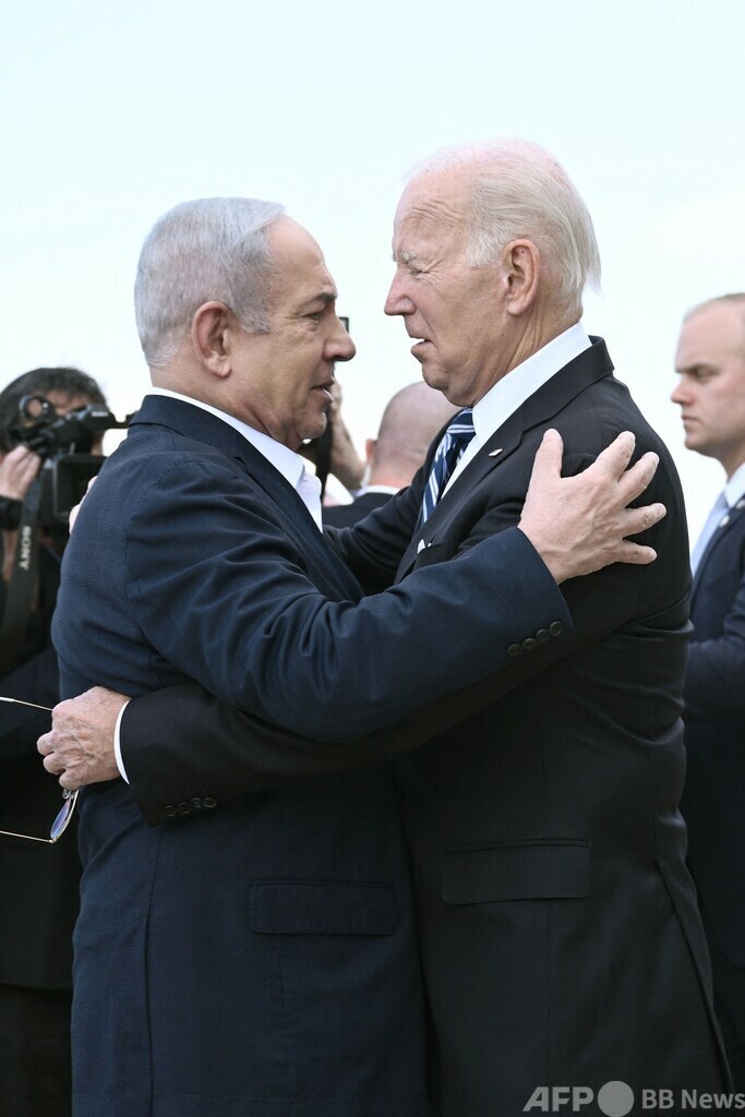 【10月18日 AFP】(更新)米国のジョー・バイデン(Joe Biden)大統領は18日、イスラエルを訪問し、テルアビブでベンヤミン・ネタニヤフ(Benjamin Netanyahu)首相と会談した。