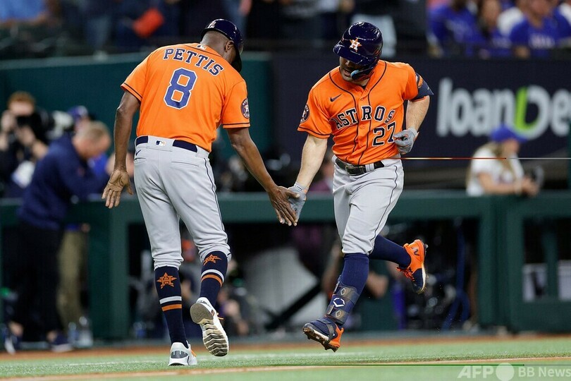 【10月19日 AFP】23MLBは18日、ア・リーグ優勝決定シリーズ(7回戦制)第3戦が行われ、昨季王者ヒューストン・アストロズ(Houston Astros)が8‐5でテキサス・レンジャーズ(Texas Rangers)を下し、シリーズ通算戦績を1勝2敗とした。