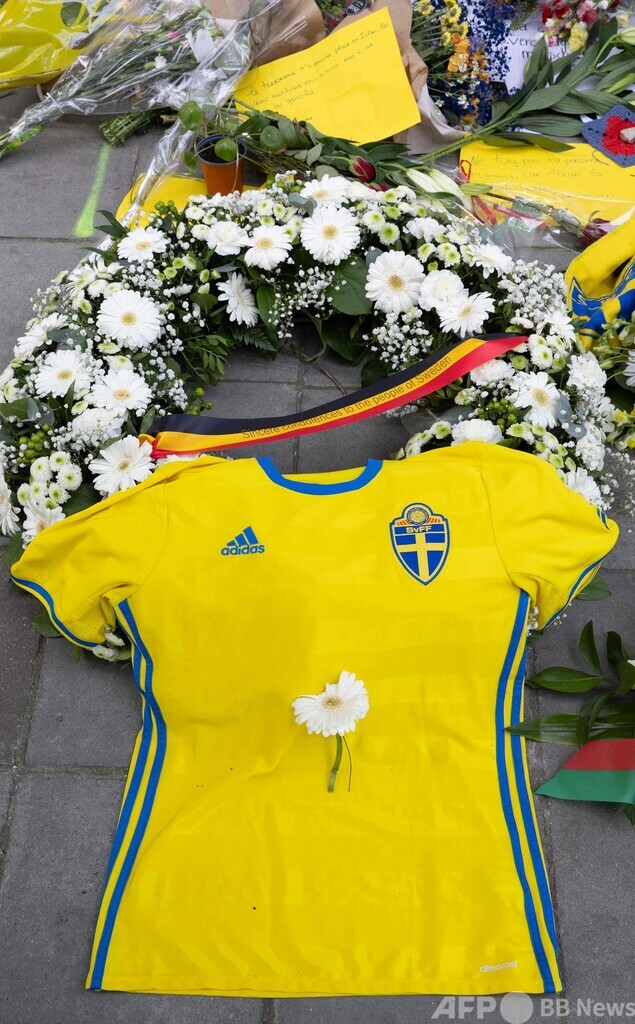 事件では、スウェーデン代表のサポーター2人が、イスラム過激派によるとみられる銃撃で死亡。ベルギーに不法に滞在していたチュニジア国籍の容疑者の男(45)は、翌17日に警察の作戦中に射殺された。(c)AFP