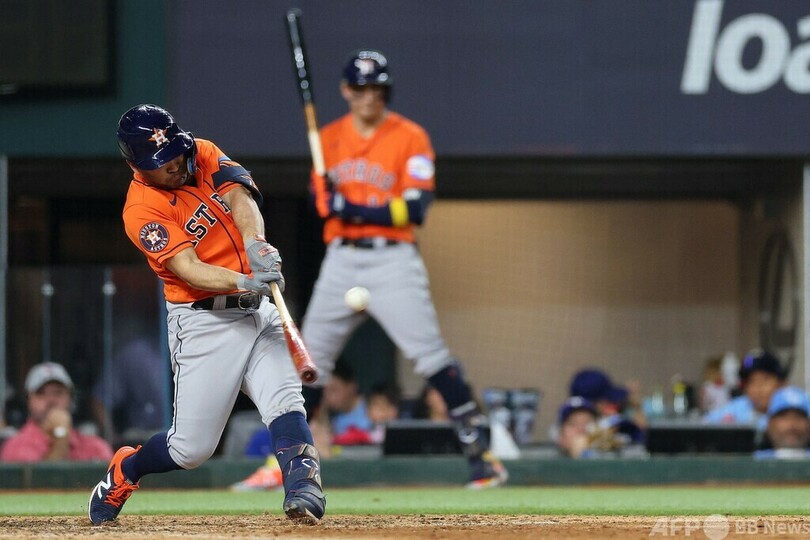 【10月21日 AFP】23MLBは20日、ア・リーグ優勝決定シリーズ(7回戦制)第5戦が行われ、昨季王者ヒューストン・アストロズ(Houston Astros)は9回にホセ・アルトゥーベ(Jose Altuve)が逆転3点本塁打を放ってテキサス・レンジャーズ(Texas Rangers)を5-4で下し、対戦成績を3勝2敗として3季連続のワールドシリーズ進出に王手をかけた。