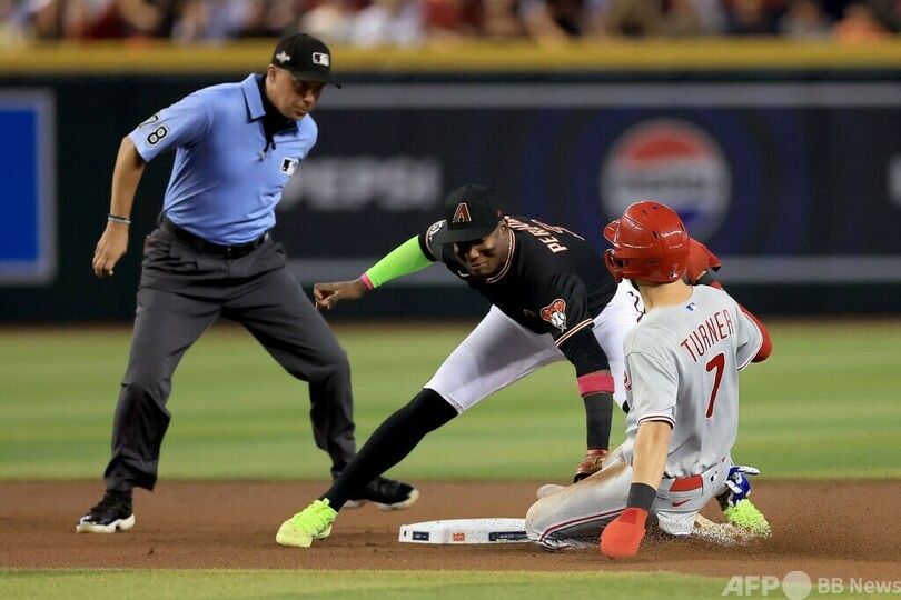 【10月21日 AFP】23MLBは20日、ナ・リーグ優勝決定シリーズ(7回戦制)第4戦が行われ、アリゾナ・ダイヤモンドバックス(Arizona Diamondbacks)が6-5でフィラデルフィア・フィリーズ(Philadelphia Phillies)に逆転勝ちし、対戦成績を2勝2敗の五分に戻した。