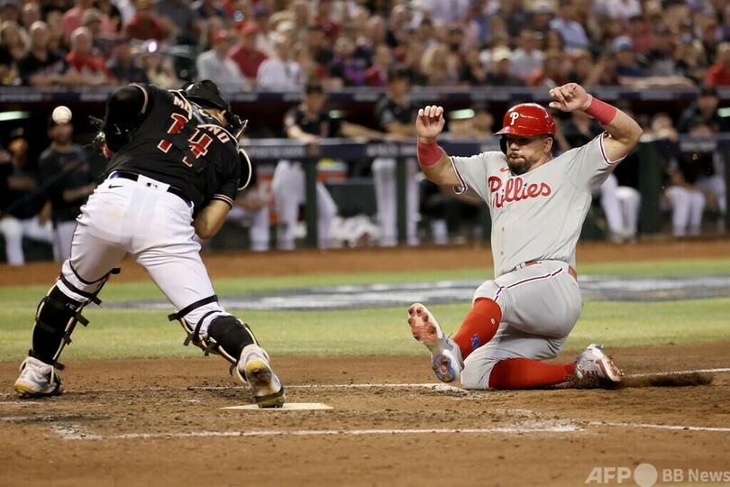 【10月21日 AFP】23MLBは20日、ナ・リーグ優勝決定シリーズ(7回戦制)第4戦が行われ、アリゾナ・ダイヤモンドバックス(Arizona Diamondbacks)が6-5でフィラデルフィア・フィリーズ(Philadelphia Phillies)に逆転勝ちし、対戦成績を2勝2敗の五分に戻した。
