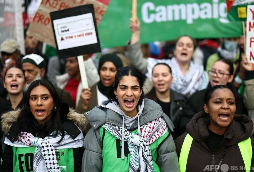 【10月22日 AFP】英ロンドン警察は21日、同市で親パレスチナ団体が主催するデモ行進が行われ、約10万人が参加したと明らかにした。同様のデモは欧州各地で相次いでいる。