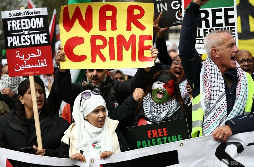 【10月22日 AFP】英ロンドン警察は21日、同市で親パレスチナ団体が主催するデモ行進が行われ、約10万人が参加したと明らかにした。同様のデモは欧州各地で相次いでいる。