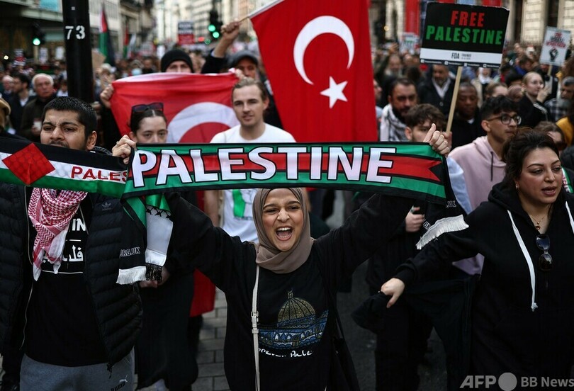 【10月22日 AFP】英ロンドン警察は21日、同市で親パレスチナ団体が主催するデモ行進が行われ、約10万人が参加したと明らかにした。同様のデモは欧州各地で相次いでいる。